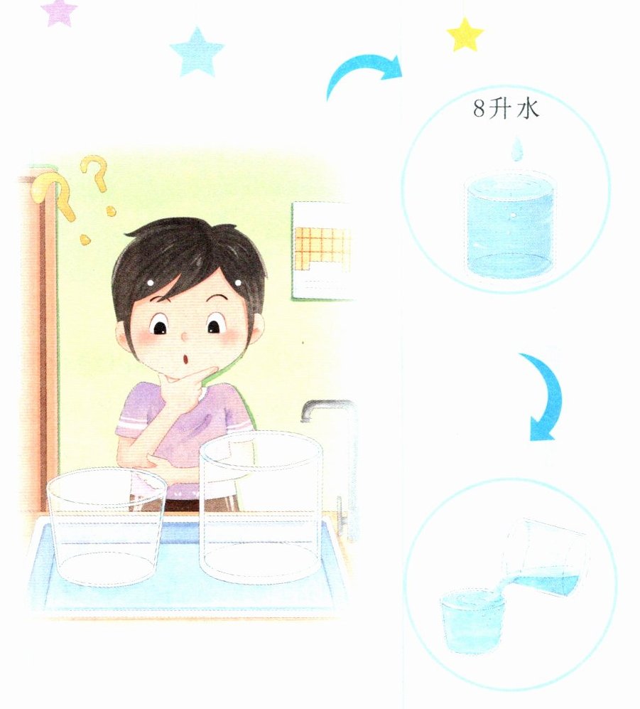 2 先把A容器中的8升水倒出5升至B容器,再把B容器中的5升水全部倒出,这时A容器中还剩3升水。