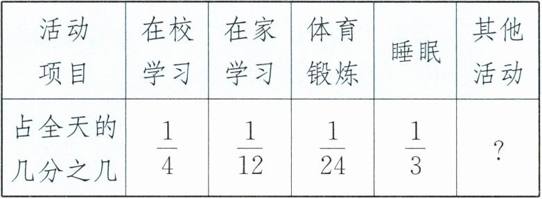 )}$。(2)聪聪“其他活动”所用的时间占全天的$\frac{(