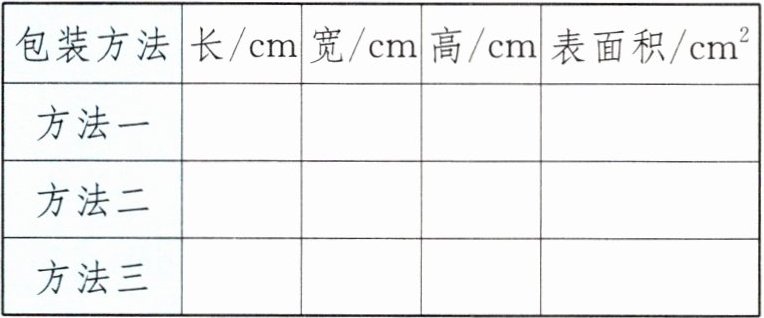 (2)包装方法 长/cm 宽/cm 高/cm 表面积/cm²