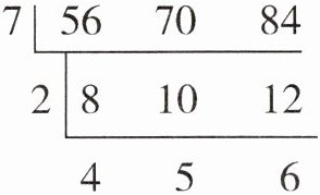 答案详解 56,70 和 84 的最大公因数是 $ 7 × 2 = 14 $。
