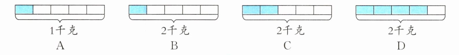 (2)图中涂色部分可以表示$\frac {2}{5}$千克的是(