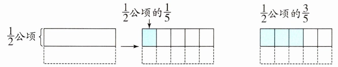 (2)种玉米的面积占这块地的$\frac {3}{5}$,就是把$\frac {1}{2}$公顷平均分成5份,取其中的3份,如右上图。