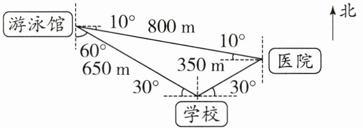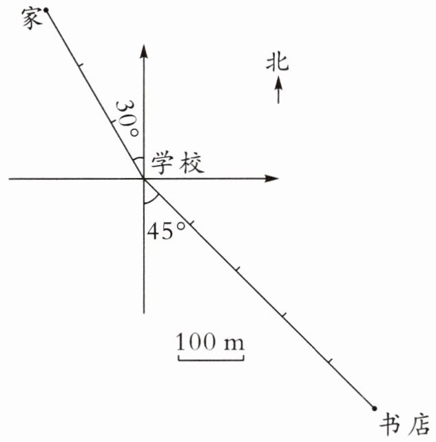 (2)李老师先向北步行到达超市,再向南偏东方向步行到达邮局,最后向东偏北方向步行到达图书馆。图(