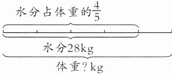 方法一:由以上数量关系式可知,小明体内水分的质量$÷\frac {4}{5}= $小明的体重,列式解答$28÷\frac {4}{5}= 28×\frac {5}{4}= 35(kg)$。