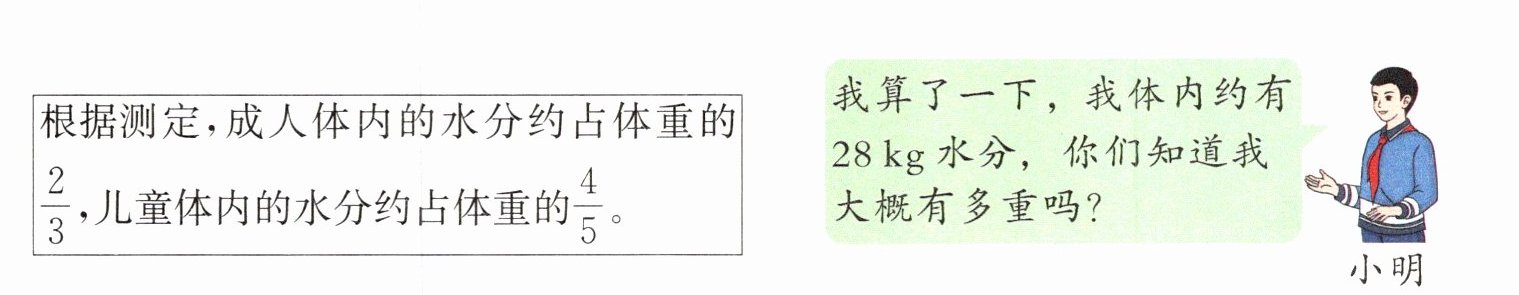 小明的体重$×\frac {4}{5}= $小明体内水分的质量
