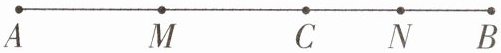 20. (8分)(1)如图,点C在线段AB上,$ AC = 6 \text{ cm} $,$ BC = 4 \text{ cm} $,点M,N分别是AC,BC的中点,求线段MN的长度.