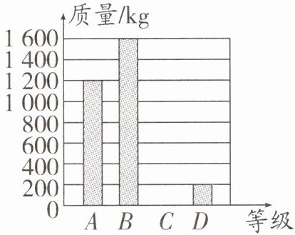18. (8分)某水果批发市场将一批苹果分为$A$,$B$,$C$,$D$四个等级,统计后将结果绘制成条形统计图,已知$A$等级苹果的质量占这批苹果总质量的30%.