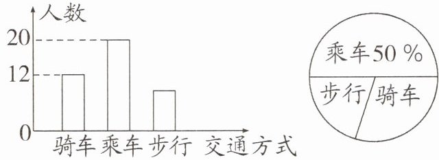 15. 某校从八年级中随机抽取部分学生,调查他们上学的交通方式,得到骑车、乘车、步行的人数等资料绘制成不完整的统计图(如图).那么根据统计图提供的信息可知,步行的有______人.
