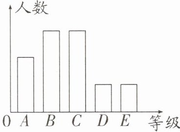 16. 某市对九年级学生进行“综合素质”评价,评价结果分为$A$,$B$,$C$,$D$,$E$五个等级.现随机抽取了500名学生的评价结果作为样本进行分析,绘制了如图所示的统计图.已知图中从左到右的五个长方形的高之比为$2:3:3:1:1$,据此估算该市80000名九年级学生中“综合素质”评价结果为“$A$”的学生约为______人.