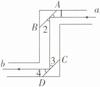 同样根据光线反射原理,出射光线$b$与镜面$CD$的夹角和$\angle 3$互余,所以出射光线$b$与镜面$CD$的夹角为$45^{\circ}$,又因为入射光线$a$与出射光线$b$平行,所以$\angle 4$与出射光线$b$和镜面$CD$的夹角相等,即$\angle 4 = 45^{\circ}$。