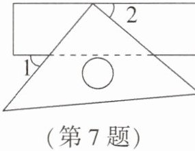 7. 如图,把一个直角三角尺的直角顶点放在一把直尺的一边上,若$ \angle 1 = 50^{\circ} $,则$ \angle 2 = $( )