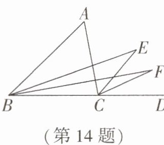 14. 如图,BE,CE分别为△ABC的内、外角平分线,BF,CF分别为△EBC的内、外角平分线,若∠A= 56°,则∠BFC= ______度.