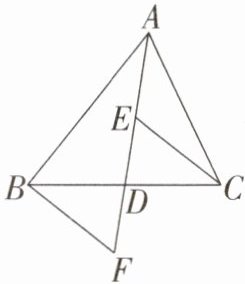 8. 如图,AD是△ABC的中线,E,F分别是AD和AD延长线上的点,且DE= DF,连接BF,CE,下列说法:①△ABD和△ACD面积相等;②∠BAD= ∠CAD;③△BDF≌△CDE;④BF//CE;⑤CE= AE.其中正确的是 ( )