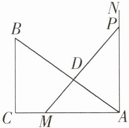 (2)AB与PM的位置关系是AB⊥PM.理由:因为△ABC≌△PMA,所以∠BAC=∠APM.因为∠MAP=90°,所以∠CAB+∠BAP=90°,所以∠BAP+∠APM=90°,所以∠PDA=180°−90°=90°,所以AB⊥PM.