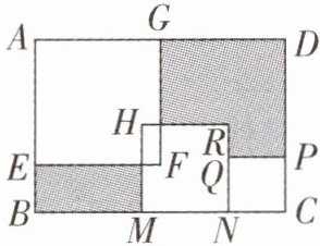 6. 如图,在长方形$ABCD中放入正方形AEFG$、正方形$MNRH$、正方形$CPQN$,点$E在AB$上,点$M$,$N在BC$上,若$AE = 7$,$MN = 5$,$CN = 3$,则图中右上角阴影部分的周长与左下角阴影部分的周长的差为( )