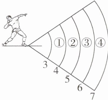 1. 如图所示,体育课上,小明的铅球成绩为6.4m,他投出的铅球落在( )
