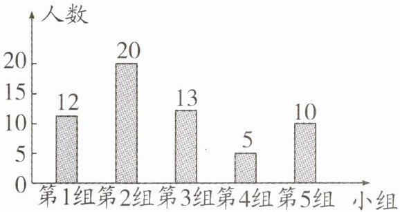 12. 七年级(2)班同学根据兴趣分成五个小组,各小组人数分布如图所示,则在扇形图中,第1组对应的圆心角度数是______.