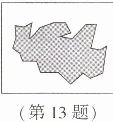 13. 如图,为测量平地上一块不规则区域(图中的阴影部分)的面积,用一个长为5m,宽为4m的长方形将不规则图案围起来,现向长方形内随机投掷小石子(扔在界线上或长方形区域外不计试验结果),经过大量重复投掷试验,发现小石子落在不规则区域的频率稳定在常数0.25附近,由此可估计不规则区域的面积是______$ m^{2} $.