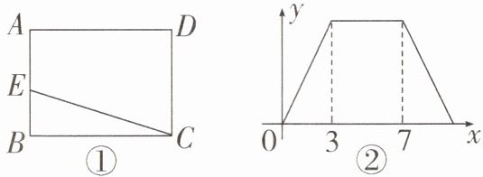 8. 如图①,在长方形ABCD中,动点E从点B出发,沿BADC方向运动至点C处停止,设点E运动的路程为x,$ \triangle BCE $的面积为y,如果y关于x的图象如图②所示,则当$ x = 7 $时,点E应运动到点( )
