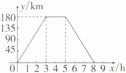 16. 某物流公司的快递车和货车每天沿同一条路线往返于A,B两地,快递车比货车多往返一趟.如图表示货车距离A地的路程y(单位:km)与所用时间x(单位:h)的图象,其间在B地装卸货物2h.已知快递车比货车早1h出发,最后一次返回A地比货车晚1h.若快递车往返途中速度不变,且在A,B两地均不停留,则两车在往返途中相遇______次.