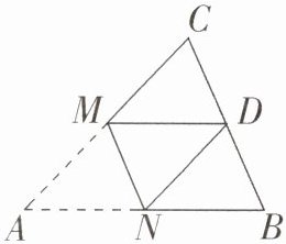 15. 如图,将$ \triangle ABC $折叠,使点A与BC的中点D重合,折痕为MN,若$ AB = 8 $,$ BC = 6 $,则$ \triangle DNB $的周长为______.