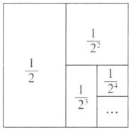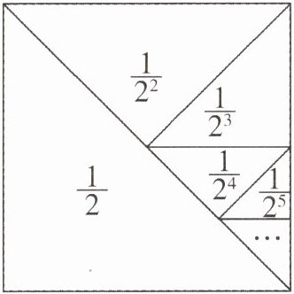 19. 数学活动中,小明为了求$\frac{1}{2} + \frac{1}{2^2} + \frac{1}{2^3} + … + \frac{1}{2^n}$的值,设计了如图所示的几何图形。