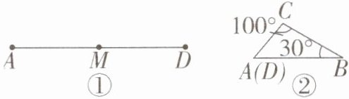 3. 如图①,$M是铁丝AD$的中点,将该铁丝首尾相接折成$\triangle ABC$,且$\angle B = 30^{\circ}$,$\angle C = 100^{\circ}$,如图②,则下列说法正确的是( )