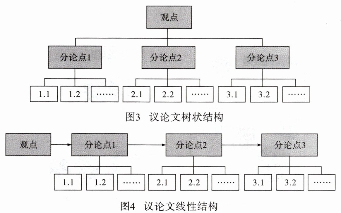 自上而下找结构主要适用于对一个主题或问题进行拆分。先对主题或问题进行结构化拆分(即按照一定维度进行拆分),建立起一个框架,再将已有的信息或解决方案放入到框架中。如,语文老师这样教写议论文:开篇亮出观点,然后将观点分解为几个分论点(分论点之间的关系可以是并列的,也可以是层层递进的),再用论据证明分论点,最后对文章进行总结。这样就形成了一个树状结构或线性结构(也叫流程图),如图3、图4:
