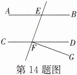 14.如图,直线AB,CD被直线EF所截,且$AB// CD,FG⊥EF$于点F,判断$∠BEF与∠DFG$之间存在什么关系,并说明理由。