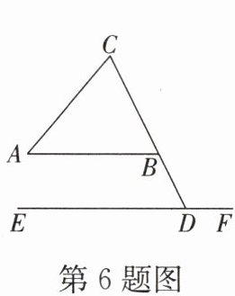 6. 如图,$\triangle ABC的边CB的延长线交EF于点D$,且$EF// AB$。若$∠BDF= 116^{\circ}$,$∠ACB= 66^{\circ}$,则$∠A= $______$^{\circ}$。