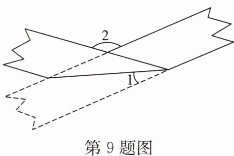 9. (2023·台州中考)用一张等宽的纸条折成如图的图案,若$∠1= 20^{\circ}$,则$∠2$的度数为______。