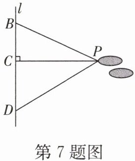 7. (2024·宣城)在体育课上,某同学的跳远情况如图,直线$l$表示起跳线,经测量,$PB= 3.3m$,$PC= 3m$,$PD= 3.5m$,则该同学的实际跳远成绩是______m。