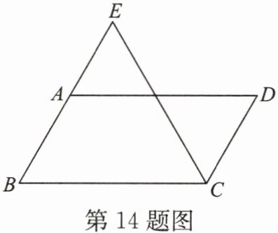 14. 如图,在四边形ABCD中,$AD// BC$,$\angle B= \angle D$,点E在BA的延长线上,连接CE。