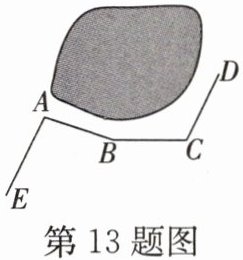 13. 如图,一条公路修到湖边时,需拐弯绕湖而过,在A,B,C三处经过三次拐弯,此时道路恰好和第一次拐弯之前的道路平行(即$AE// CD$)。若$\angle A= 98^{\circ}$,$\angle B= 162^{\circ}$,则$\angle C$的度数是______。