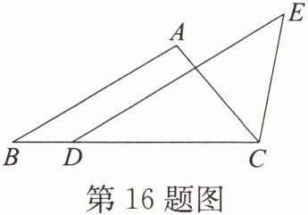 16. 如图,在△ABC 中,点 D 在边 BC 上,CD= AB,DE//AB,∠DCE= ∠A。试说明:DE= BC。