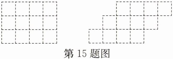 15. 沿图中的虚线,分别把下面图形划分为两个全等图形。