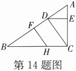 14. (2024·宁国)如图,已知 AC⊥BC,CD⊥AB,DE⊥AC,FH⊥AB。若∠EDC= 55°,则∠FHC= ______度。