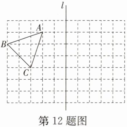(1)在图中画出与△ABC关于直线l成轴对称的$△A_1B_1C_1;$