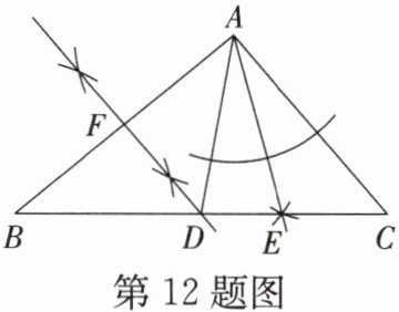 12. 如图,在△ABC中,∠B= 40°,∠C= 50°。
