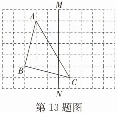 13. (2024·湛江)如图,在正方形网格中有一个△ABC。