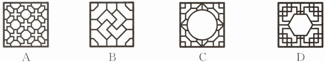3. 中国古典花窗图案丰富多样,极具观赏价值。下列各图是中国古典花窗基本图案,其中不是轴对称图形的是 ()