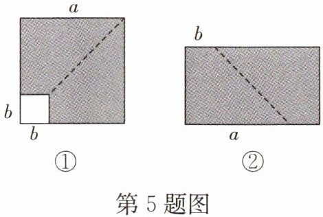 5. 如图①,从边长为$a的大正方形中剪去一个边长为b$的小正方形,再将阴影部分沿虚线剪开,将其拼接成如图②的长方形,则根据两图中阴影部分面积相等可以验证的数学公式为 ()