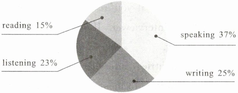 37% of the students hope to improve their speaking, and 25% of them want to improve their writing. 23% of them hope to do better in listening and 15% of them want to improve their reading. So how can we improve our English? Here is my advice.