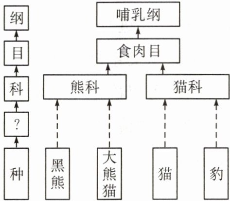 3. 中国国宝、全球“网红”大熊猫在生物分类上的位置如图所示。下列相关叙述正确的是(