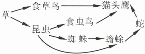 (3)草→昆虫→蜘蛛→蟾蜍→蛇→猫头鹰