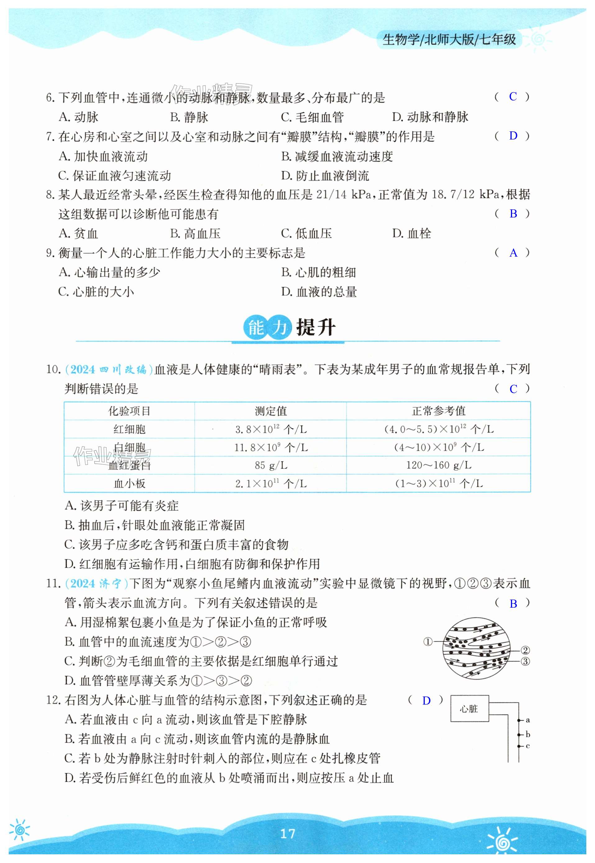 注:目前有些书本章节名称可能整理的还不是很完善,但都是按照顺序排列的,请同学们按照顺序仔细查找。练习册 2025年暑假作业安徽教育出版社七年级生物北师大版 答案主要是用来给同学们做完题方便对答案用的,请勿直接抄袭。
