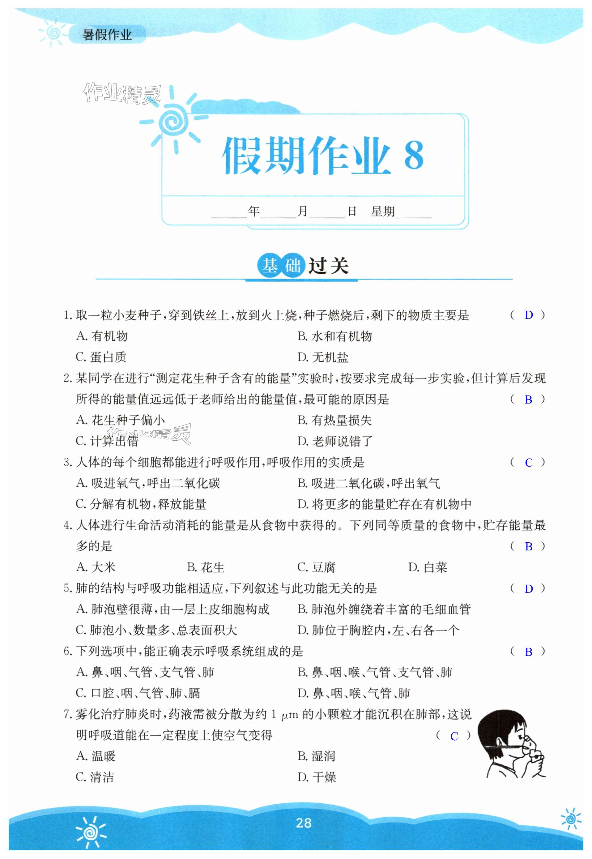 注:目前有些书本章节名称可能整理的还不是很完善,但都是按照顺序排列的,请同学们按照顺序仔细查找。练习册 2025年暑假作业安徽教育出版社七年级生物北师大版 答案主要是用来给同学们做完题方便对答案用的,请勿直接抄袭。