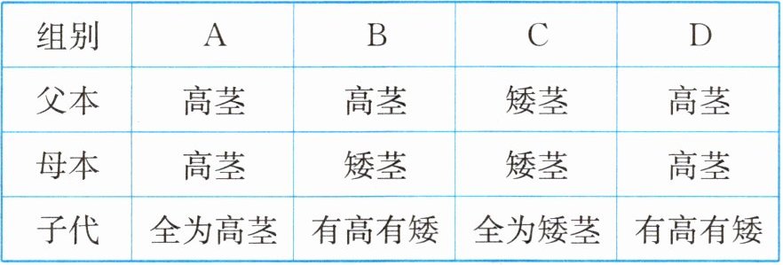 3. 用豌豆进行四组杂交实验,结果如下表,能确定高茎为显性性状的组别是()。