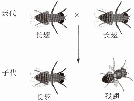 4. (2023·苏州)两只长翅果蝇的杂交后代中,有长翅和残翅两种个体,如下图所示。若用字母 B 或 b 表示相应的基因,下列相关叙述正确的是()。