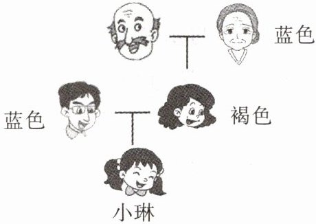 3. (2021·河南)人眼的虹膜有褐色的和蓝色的,小琳家部分成员虹膜颜色的遗传情况如下图所示。若褐色由显性基因 D 控制,蓝色由隐性基因 d 控制,下列说法不正确的是()。